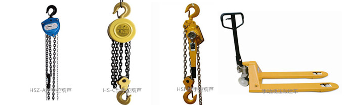 這些手動起重工具中較受歡迎的的型號有:HSZ型手拉葫蘆、VE型手拉葫蘆、HS-VT型手拉葫蘆、HSZ-A型手拉葫蘆、HS-C型手拉葫蘆、HSH型手扳葫蘆、SM鋼絲繩手扳葫蘆、手動液壓搬運車、堆高車、螺旋千斤頂、臥式千斤頂。這些手動起重工具有各自的使用范圍,它們受歡迎的程度,與客戶的需求有直接的關(guān)系。手拉葫蘆在工業(yè)、農(nóng)業(yè)、建筑業(yè)使用較多,而手扳葫蘆在交通運輸、電力行業(yè)應(yīng)用較多,手動液壓搬運車在商場、貨倉使用較多,千斤頂在建筑行業(yè)和汽車維修行業(yè)使用廣泛。