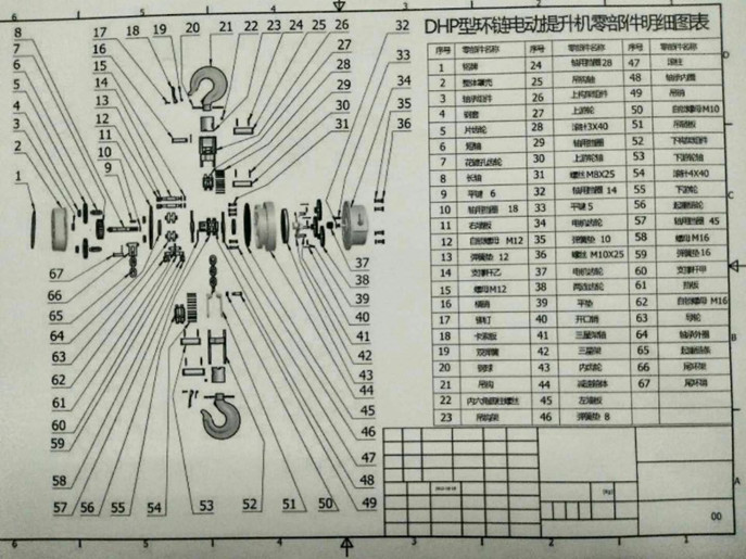上面的圖表很直觀吧,列舉了DHP的主要的67個零部件。北京凌鷹DHP型環(huán)鏈電動葫蘆客戶認(rèn)可度高、性能穩(wěn)定、高安全性,是消費者信得過產(chǎn)品。
