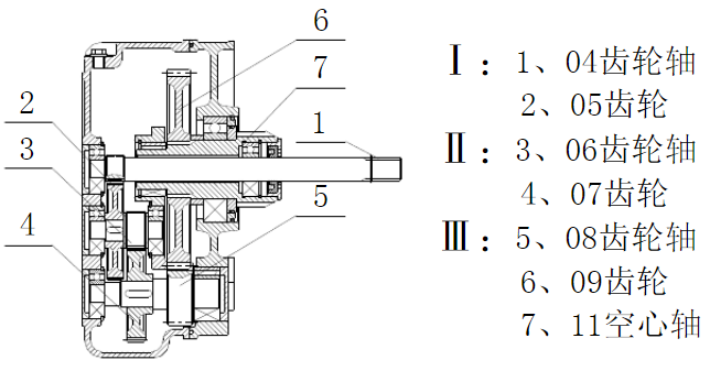 起升減速器:電動葫蘆起升減速器,均采用標(biāo)準(zhǔn)模數(shù)斜齒輪三級減速。齒輪及齒輪軸由合金鋼鍛制,并經(jīng)熱處理。全部采用滾動軸承。箱殼為鑄鐵制造,裝配嚴(yán)密,灰塵不易侵入。傳動原理見下圖: