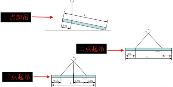 3、長(zhǎng)型物件吊點(diǎn)選擇:(L為長(zhǎng)形物件總長(zhǎng)度)。