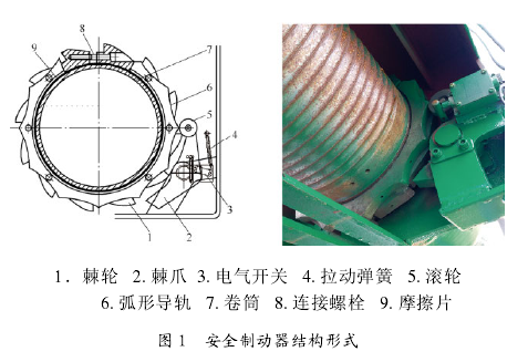 正常作業(yè)工況:當(dāng)電動(dòng)葫蘆以額定起升速度進(jìn)行上升或下降作業(yè)時(shí),弧形導(dǎo)軌與卷筒一起轉(zhuǎn)動(dòng),帶動(dòng)滾輪,是滾輪棘爪組合饒固定銷軸擺動(dòng),擺動(dòng)到一定傾角后受彈簧拉力與自身重力的作用向反方向擺動(dòng)。因棘輪機(jī)構(gòu)具有單向逆止屬性,上升方向不會(huì)嚙合;下降方向因鉸臂的擺動(dòng)傾角較小,棘輪與棘爪也不會(huì)嚙合。