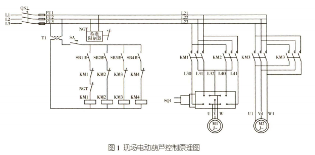 (2)控制電動葫蘆上升的接觸器KM1故障吸死。其控制按鈕SB1及啟動開關(guān)SA均無法切斷電動葫蘆上升的電源,導(dǎo)致事故的發(fā)生。