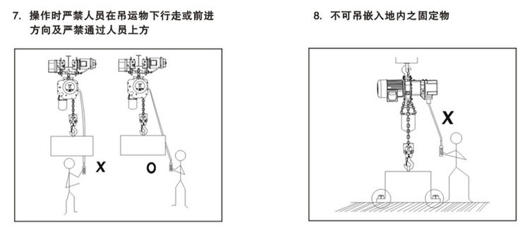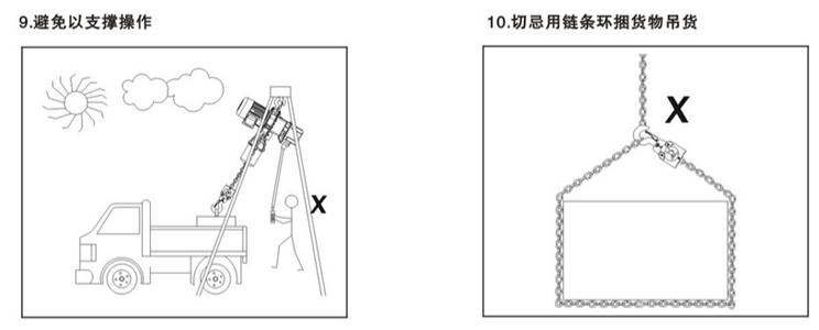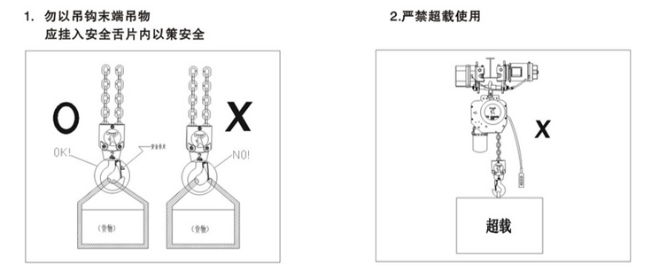 環(huán)鏈電動(dòng)葫蘆在使用中有很多方面是需要注意的,凌鷹根據(jù)多年的行業(yè)經(jīng)驗(yàn)總結(jié)了一些使用守則,下面通過一組圖片進(jìn)行解說。