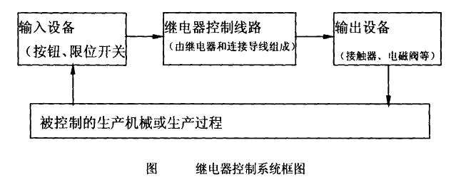 下圖中是一個繼電器控制系統(tǒng)。由繼電器、接觸器用導線連接起來以實現(xiàn)控制程序的,因此屬于接線程序控制系統(tǒng),其輸入對輸出的控制是通過接線程序來實現(xiàn)的,輸入設備(按鈕、行程開關、限位開關、傳感器等)用以向系統(tǒng)送入控制信號。輸出設備(接觸器、電磁閥等執(zhí)行元件)用以控制生產(chǎn)機械和生產(chǎn)過程中的各種被控對象(電動機、電爐、電磁閥們等)。