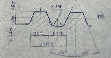 齒形的選擇:根據(jù)葫蘆傳動(dòng)齒輪低速重載,小齒輪齒數(shù)甚小等特點(diǎn)。HSZ型葫蘆選用了齒形角為20°的漸開(kāi)線特種短齒變位齒輪,其基本齒條的基本參數(shù)如下圖: