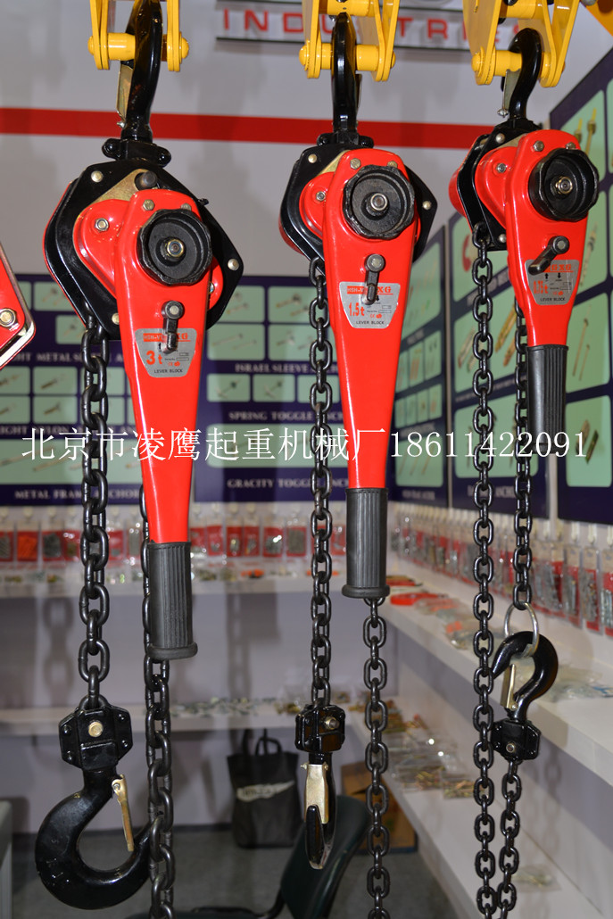 手扳葫蘆是通過人力手動(dòng)扳動(dòng)手柄借助杠桿原理獲得與負(fù)載相匹配的直線牽引力,輪換地作用于機(jī)芯內(nèi)負(fù)載的一個(gè)鉗體,帶動(dòng)負(fù)載運(yùn)行。它具有結(jié)構(gòu)緊湊、重量輕、外形尺寸小、攜帶方便省力、安全可靠、使用壽命長(zhǎng)、手扳力小、對(duì)鋼絲繩磨損小等優(yōu)點(diǎn)。它可以進(jìn)行提升、牽引、下降、校準(zhǔn)等作業(yè)。若配置特殊裝置,不但可以作非直線牽引作業(yè),且可以很方便的選擇合適的操作位置,或以較小噸位的機(jī)具成倍地?cái)U(kuò)大其負(fù)載能力,對(duì)于較大噸位負(fù)載可以采用數(shù)個(gè)機(jī)具并列作業(yè)。