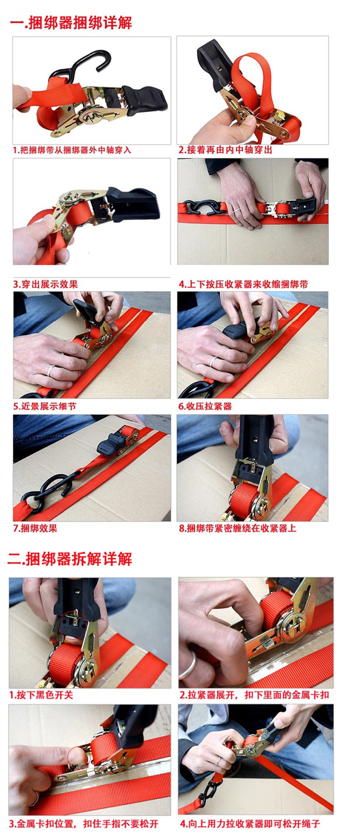 捆綁器屬于手動捆綁工具,主要用于汽車運輸貨物捆綁。捆綁器由各種不同規(guī)格的滌綸帶及金屬制品,如鉤,手拉器組成,具有操作靈活,省時省力,攜帶方便等特點。