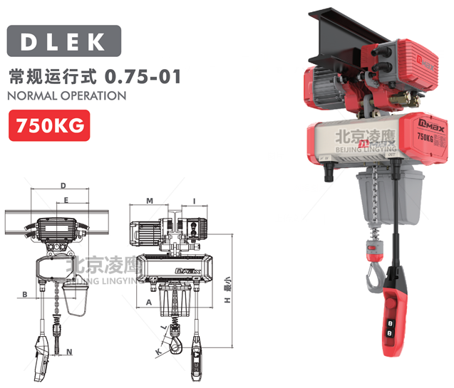 0.75噸DLEK環(huán)鏈電動葫蘆運行式